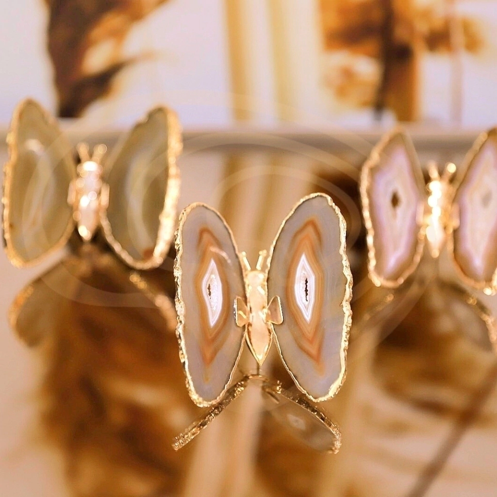 Encante-se com a beleza singular da Borboleta em Ágata Natural, uma peça que une o charme da natureza à elegância do design contemporâneo. Com bordas folheadas a ouro e veios únicos em cada pedra, essa borboleta é símbolo de transformação e equilíbrio. Ideal para quem deseja decorar com autenticidade e criar atmosferas acolhedoras, sofisticadas e cheias de significado.